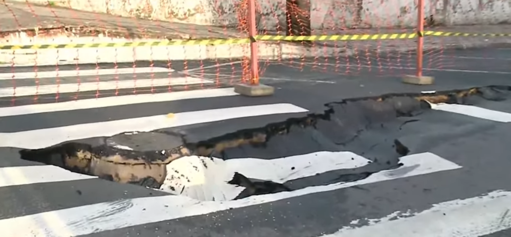 As fortes chuvas que atingem João Pessoa, desde o último domingo (1º), provocaram a abertura de uma cratera em frente ao Mercado Central, na capital paraibana.
